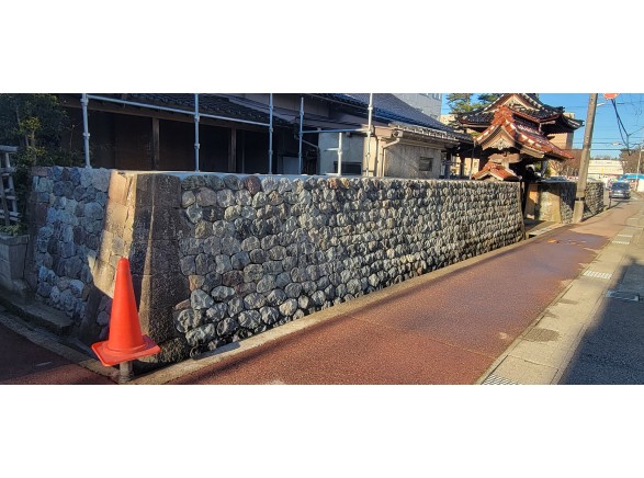 能登地震による石垣の崩落。積み直し。